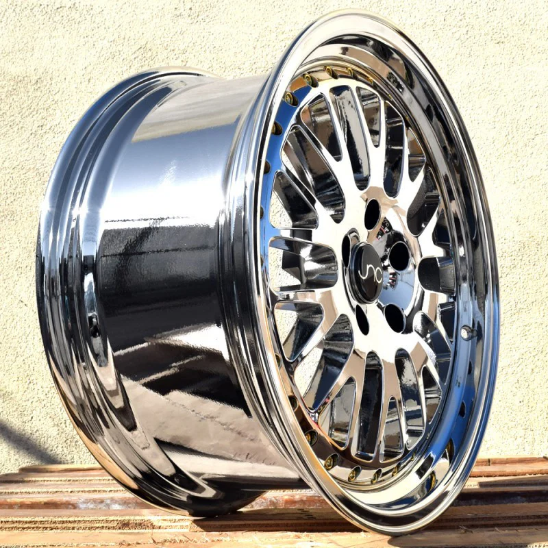 The JNC001 Platinum Gold Rivets wheel features a premium platinum finish accented with gold rivets, delivering a bold and luxurious look. Available in sizes 15x8, 16x8, 17x9, 18x8.5, and 18x9.5, it fits vehicles with 4x100, 4x114.3, 5x100, and 5x114.3 bolt patterns. Offsets of +25mm and +30mm ensure versatile fitment for a wide range of vehicles. Crafted from lightweight alloy, the JNC001 Platinum Gold Rivets wheel combines style, durability, and performance—perfect for street, stance, or show car applications.